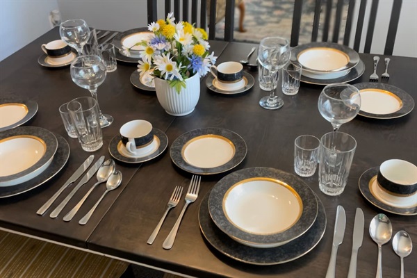 Casual dinnerware in case you want to eat outside or watch TV in the living room