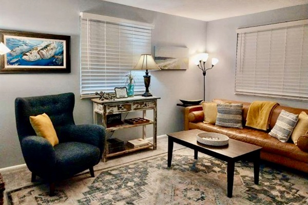 Bedroom 3: Leather chair, side lamps with USB outlets. also has TV, Books & more