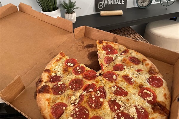 This pizza came from Moon River. They're around the corner. Mmmm, it was good!