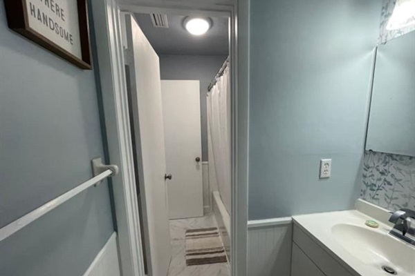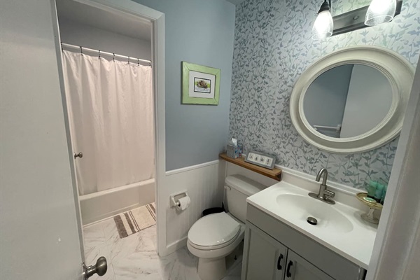 1/2 bath off hallway. This 1/2 bath is also connected to the tub & shower room.